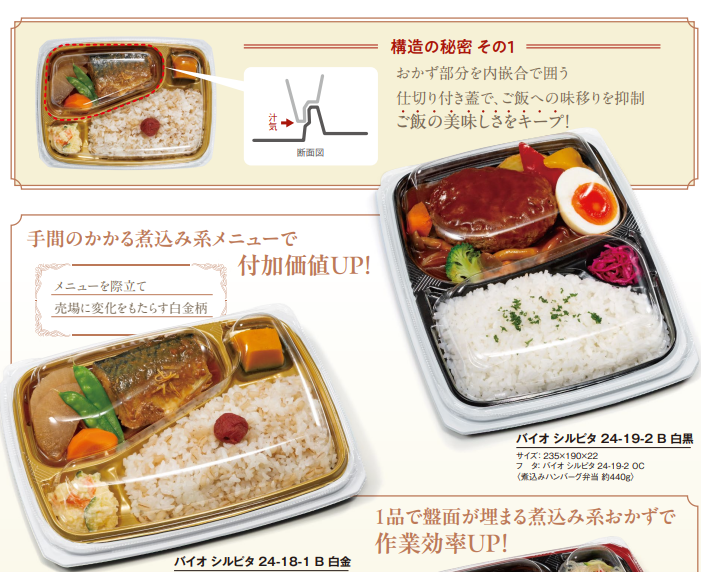 バイオ シルピタ-汁漏れを抑える新構造弁当容器