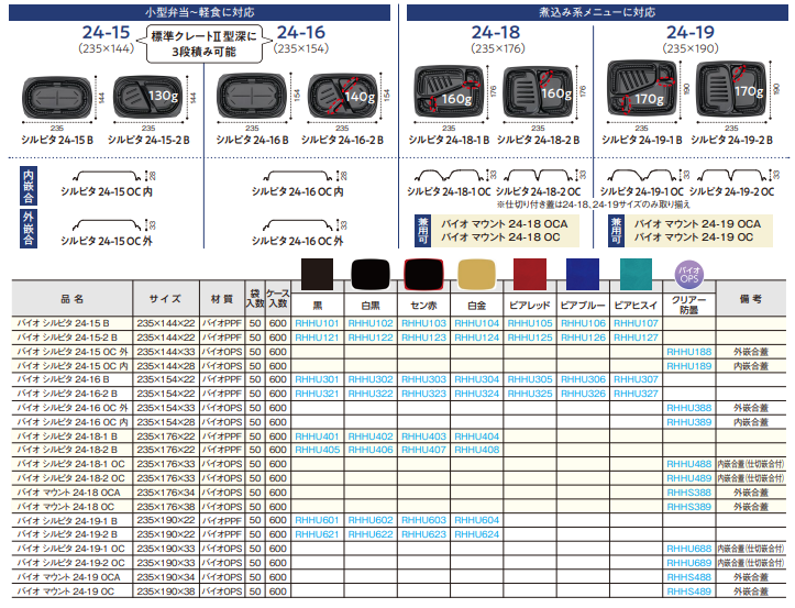 • 同じ容器で弁当・軽食を共用でき在庫集約可能